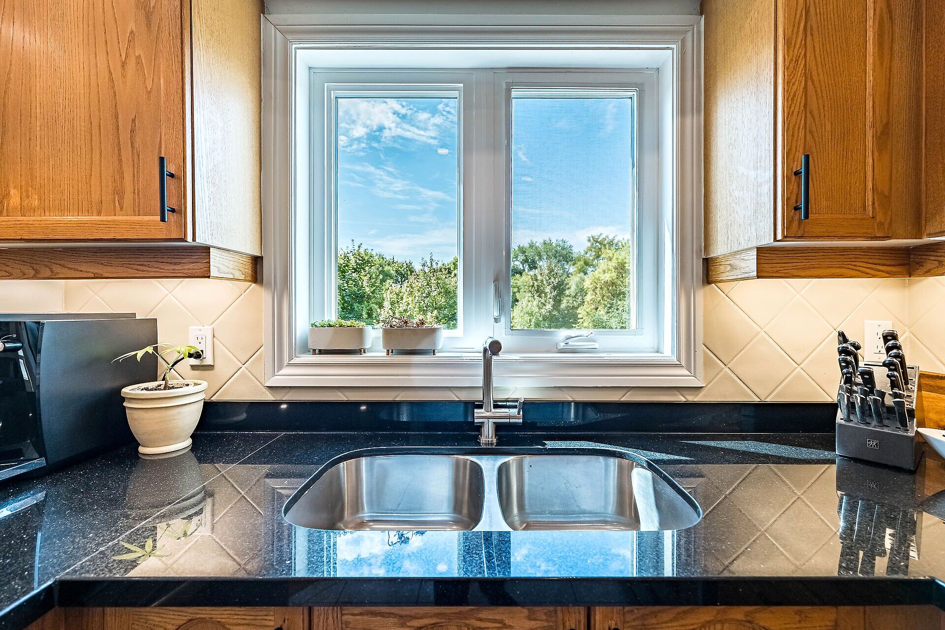 This tastefully-renovated, updated home offers turnkey living, stylish improvements & modern decor! The inviting, wide-open living/dining room enjoys a new sliding door to a sunny patio & lush-green backyard with NO houses behind! Perfect for entertaining! The updated kitchen enjoys the warmth of wood cabinets, black granite counters & stainless-steel appliances. The primary bedroom offers a walk-in closet & upgraded 3-pc ensuite! The sizable 2nd & 3rd bedrooms share a lovely 4-pc bath! And the lower level enjoys a comfy rec room with engineered flooring & fireplace. Plus, there's a laundry room & pantry. This sweet home also includes an upgraded oak staircase; custom cabinetry thruout, new windows & new front door!